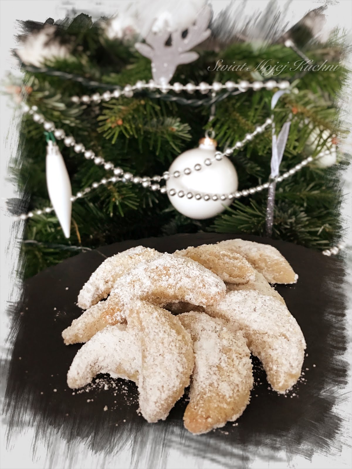 Weihnachtskipferl = świąteczne ciasteczka w kształcie pół księżyca, to moja wersja od tradycyjnych Vanillekipferl pochodzenia austriackiego.